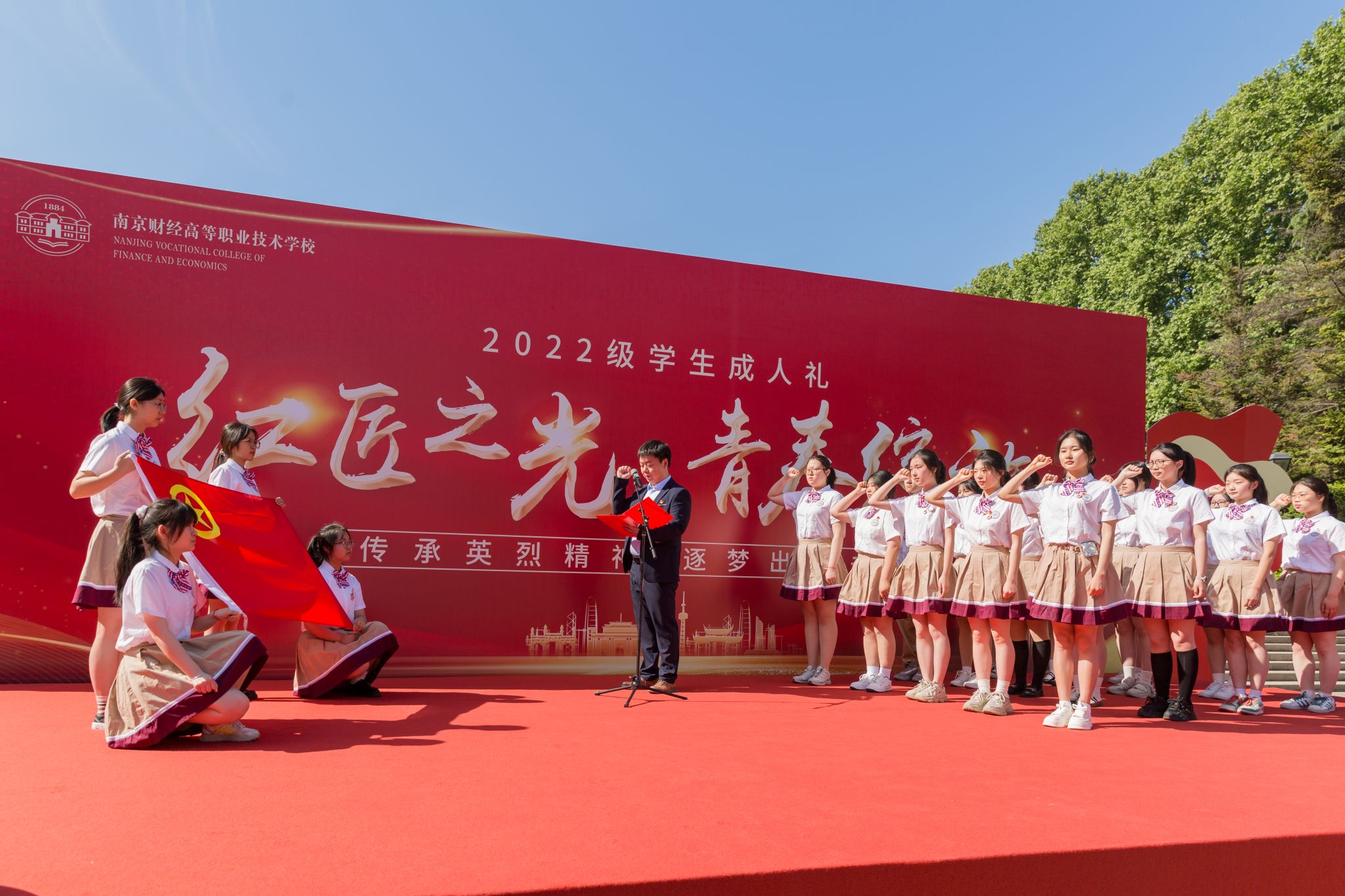 2025年4月26日上午,学校2022级全体学生在雨花台烈士陵园烈士群雕广场前,参加了“红匠之光,青春绽放”成人礼暨五四青年节活动。活动由校团委书记潘渺琛以及信息艺术系23云计算孟庆鑫担任主持人,学校副校长孙荣宝、副校长姜峰、学生工作部主任王祥、会计系主任周会林以及四系德育主任出席此次活动。