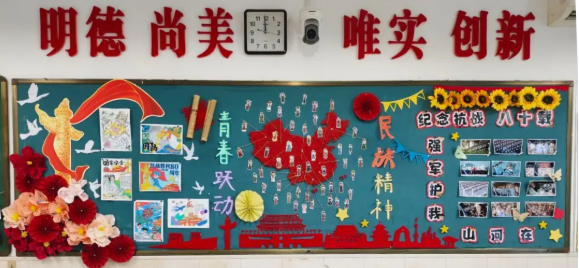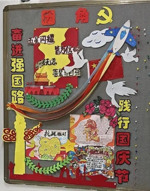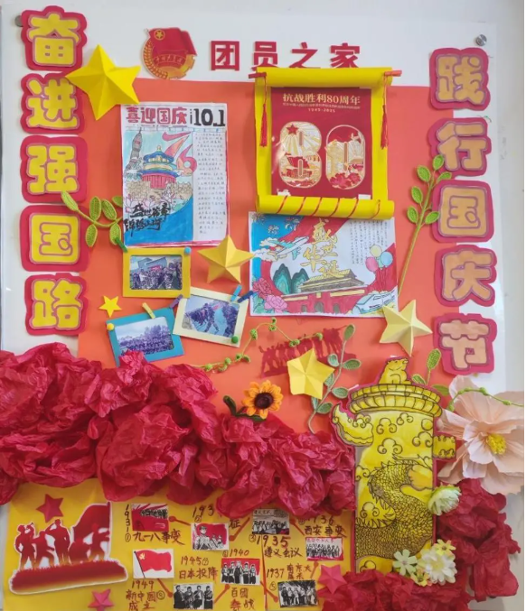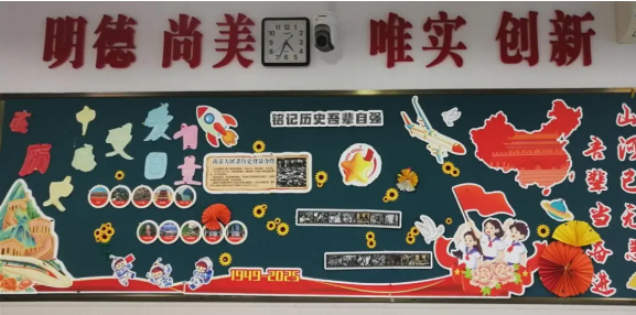 2025年10月1日是中华人民共和国成立76周年纪念日,也是中国人民抗日战争暨世界反法西斯战争胜利80周年纪念日。为纪念这一特殊的日子,我校学生精心设计并布置了各班团角及黑板报,展示中华民族从苦难走向辉煌的伟大历程,展现国家现代化建设取得的辉煌成就,增强民族自豪感和爱国情怀。