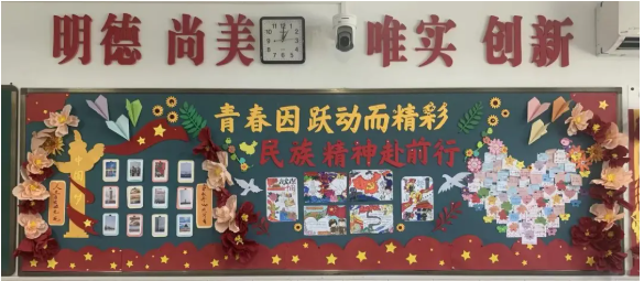 以“青春因跃动而精彩,民族精神赴前行”为主题的黑板报,深刻诠释了坚韧、勇气、团结的民族精神并非远在天边,它正蕴含在我们每一次观看阅兵时的感动里,等待我们将其转化为砥砺前行的具体行动。让我们一同在这些精心创作的作品中,感受那份薪火相传的力量,以青春之我、奋斗之我,共赴强国新征程!