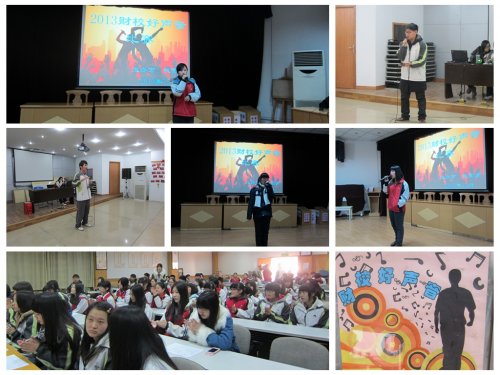 音乐是青春的符号,是时代的记忆,亦是青年学生表达情感,展现风采最直接的方式。2013年12月,由我校团委组织的第二届“唱响青春·财校好声音”比赛在学校夫子庙和新街口两个校区同时启动。