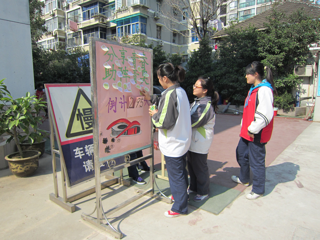 中午十二点半,学生会干部把制作精美的青奥倒计时海报摆至校门口,准备了便利贴和签字笔,等待同学们的到来和祝福。不一会儿,就有同学围了上来:“我要给青奥会留点自己的印记”、“青奥,加油!”、“愿青奥会圆满举办”、“希望青奥会能像沪深指数一样红”,同学们你一言我一句认真写下了祝福,或平实、或俏皮,用朴实的言语表达着自己作为一名南京学生对青奥会的大力支持。很快,倒计时海报上就贴满了同学们各样的祝福话语。微风吹起,载满祝福的便利贴轻轻飘动,仿佛要插上翅膀,将同学们的祝福送向未来的青奥会。