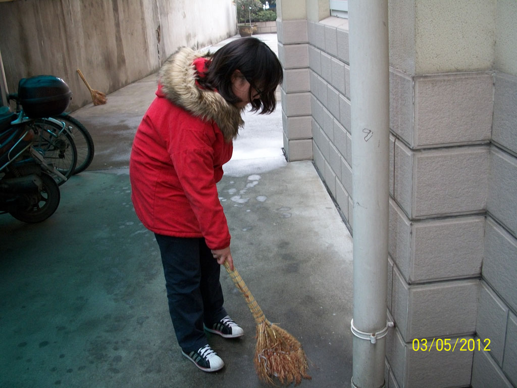 2012年3月5日,久未放晴的天空,仍旧让人感到湿漉漉的。然而,不同的是,今天潮湿的空气里又多了一份温暖的气息。经过几天的激烈讨论,我校51108班团支部策划了一次以“践行雷锋精神,为身边人服务”为主题的团会活动。下午班会课,在团支书肖鹏飞同学的组织下,51108班的20多名团员们拿起抹布和扫帚来到教室车棚,开始擦洗起教师自行车,另一批团员则在校园里进行废纸的清理和积水处理工作。冰冷的水和寒冷的天气并没有打退大家的热情,同学们热火朝天地忙了一节课。看着清理干净的车棚栏杆和没有积水的路面,大家会心的笑了。