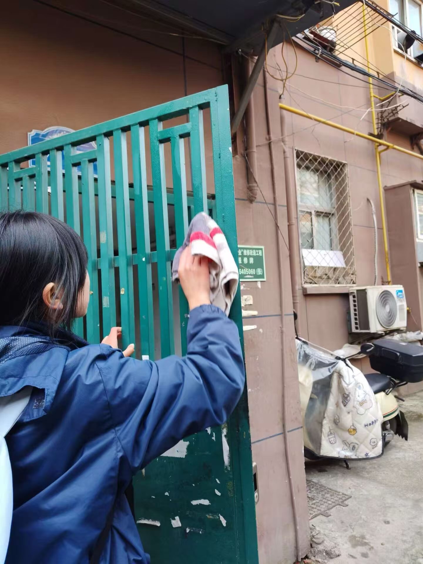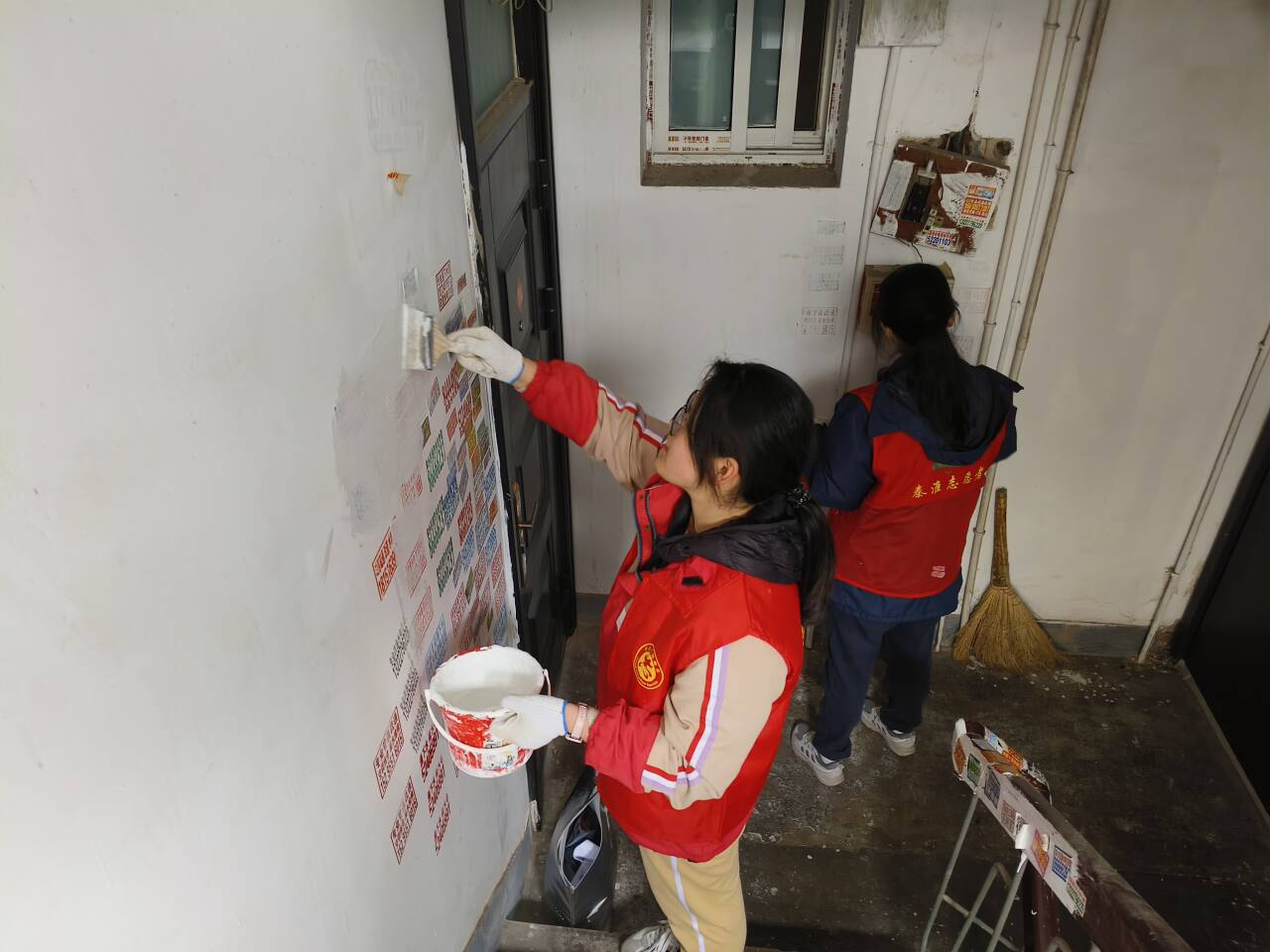 会计系同学走进新街口商业街社区,清理楼道“牛皮癣”小广告,美化社区环境。大家分工协作,仔细铲除墙面上的各类小广告,并对清理后的墙面进行重新粉刷,让原本斑驳的楼道墙面恢复了整洁。