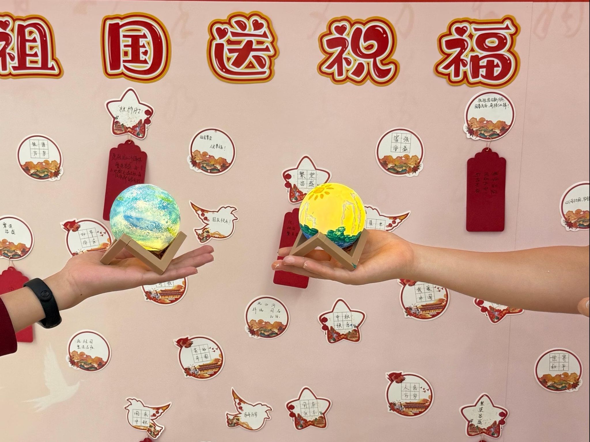 在“巧画月球灯”区域,同学们充分发挥想象力,在圆润的球灯上绘制出各式图案。灯光亮起,一盏盏独一无二的月球灯不仅照亮了现场,也点亮了每个人心中的家国情怀。