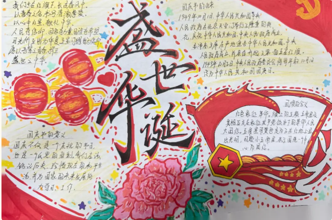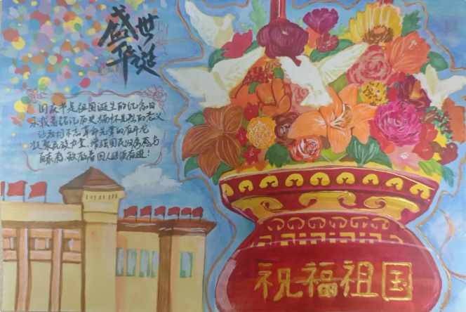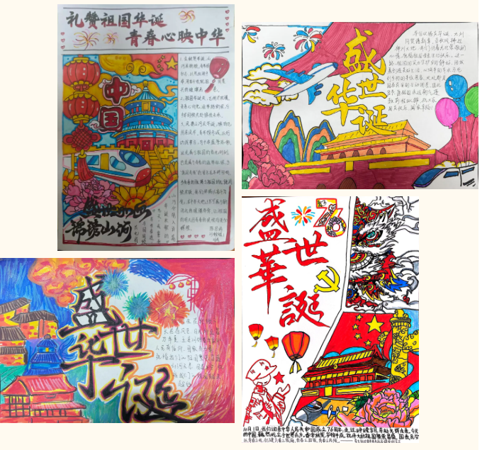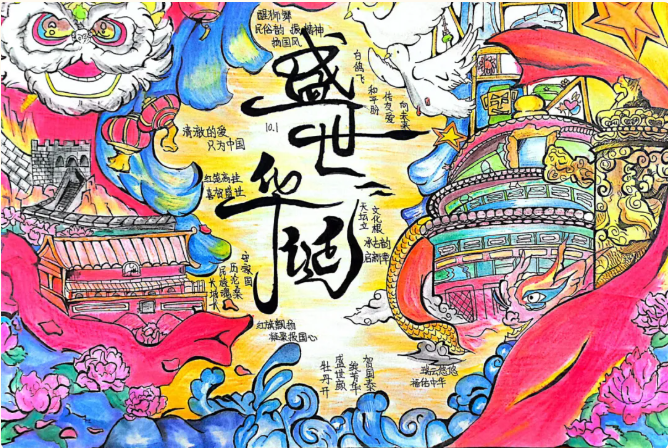 除了现场活动,我校学生还以“礼赞祖国华诞 青春心映中华”为主题,精心绘制了小报作品。
