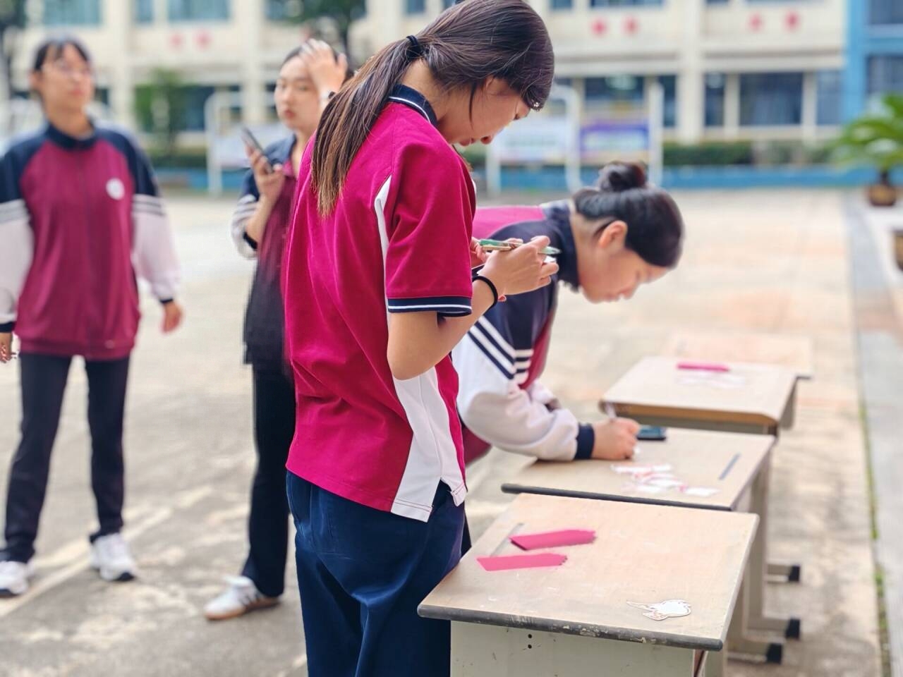 中午12时30分,活动在莫愁路校区图书馆一楼大厅和江宁校区明德泉畔同时拉开帷幕。尽管午休时间短暂,但同学们的热情丝毫不减,各个活动点前很快排起了长队,展现出青春的活力与对传统文化的热爱。